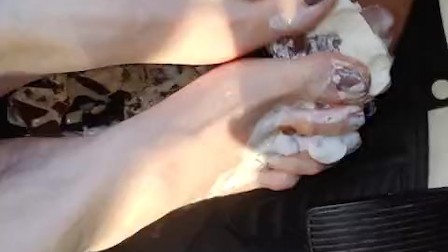 Wet, sticky and creamy feet while I smash Klondike bars on my break pedal