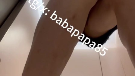 黑色连衣裙咖色丝袜红底细高跟商场更衣室发骚