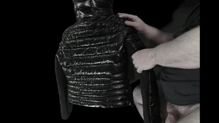 Big Cumshot on my Girlfriend's Luxurious Black 'R' Super soft Shiny Down Jacket !!