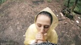 Black Lynn in Yellow Raincoat Sucking Cock in the Woods - Public Blowjob and Cum in Mouth