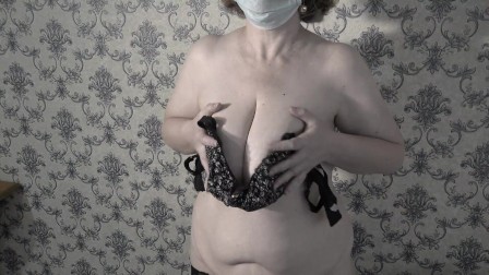 Mature BBW MILF gets naked and shows her big saggy soft natural tits.