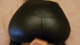Cumming over petite babes sexy ass in shiny black spandex leggings!
