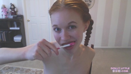 Cute Teen Dolly Little Brushing Her Teeth