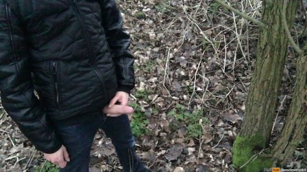 Fetish gay boy is pissing and jerking outdoors